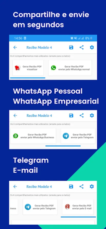 ◉ Provide your customers with receipt receipts on the spot, and send them by WhatsApp, Telegram, e-mail and many others.