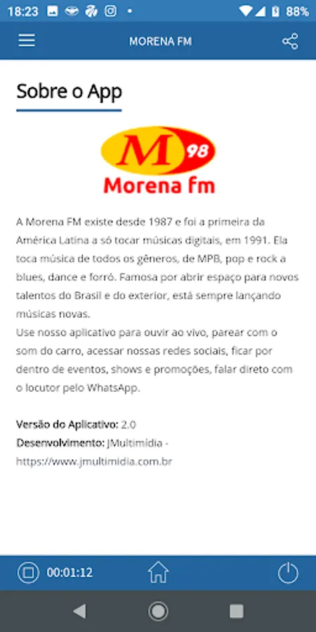 Morena FM has existed since 1987 and was the first in Latin America to only play digital music in 1991. It plays music from all genres, from MPB, pop and rock to blues, dance and forró. Famous for making room for new talents from Brazil and abroad, she is always releasing new songs.