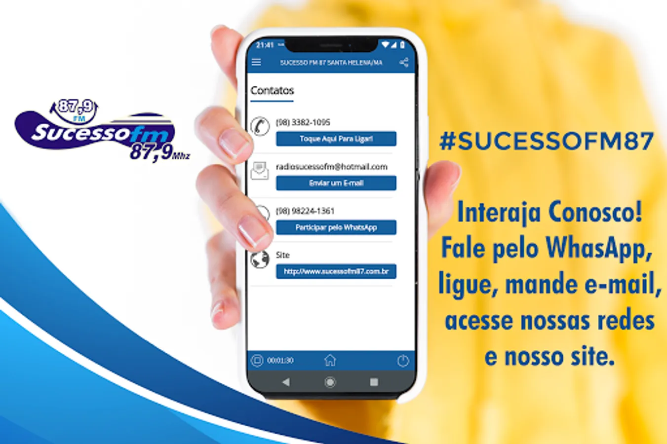 Radio Success FM FM of Santa Helena / MA has a diverse programming with youth / commercial communication, quality music and credible information.