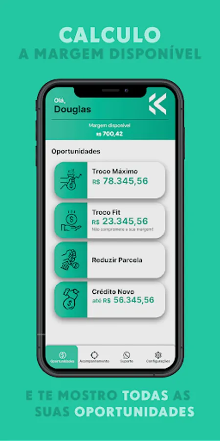 The KON algorithm is able to calculate the best payroll loan opportunities, aiming at the best interest conditions and releasing the maximum change for you.
