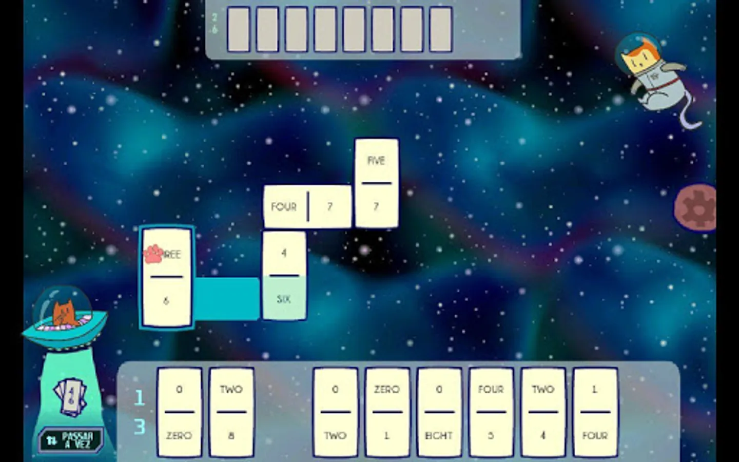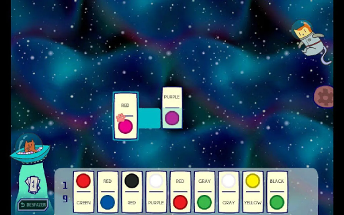 Astromyuts are playing dominoes, play with them in three CATegories! Choose from 0-10 numbers, colors and shapes!