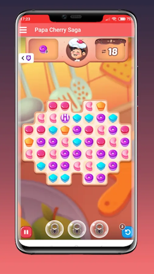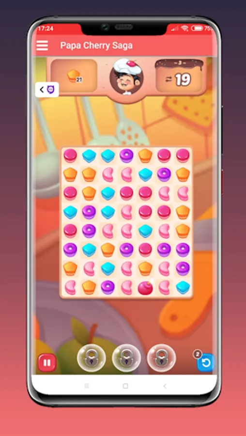 Papa Cherry's objective is to collect a certain number of desserts in each level. Join and connect three or more of them to get them off the board.