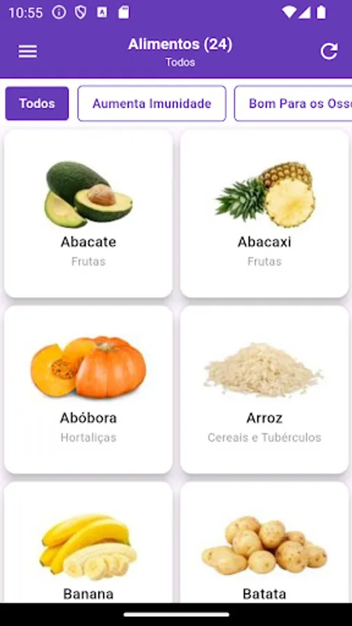 - Search for recipes with specific ingredients classified in the categories cereals, tubers, vegetables, proteins and fruits