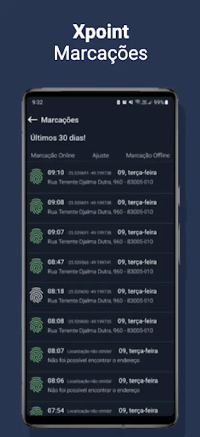 The app allows electronic time stamping by obtaining its background and momentary location to determine the correct and precise position of the workstation.
