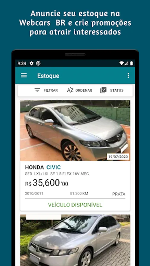 Quickly advertise your vehicles on the WebCars BR app, with the following differentials: