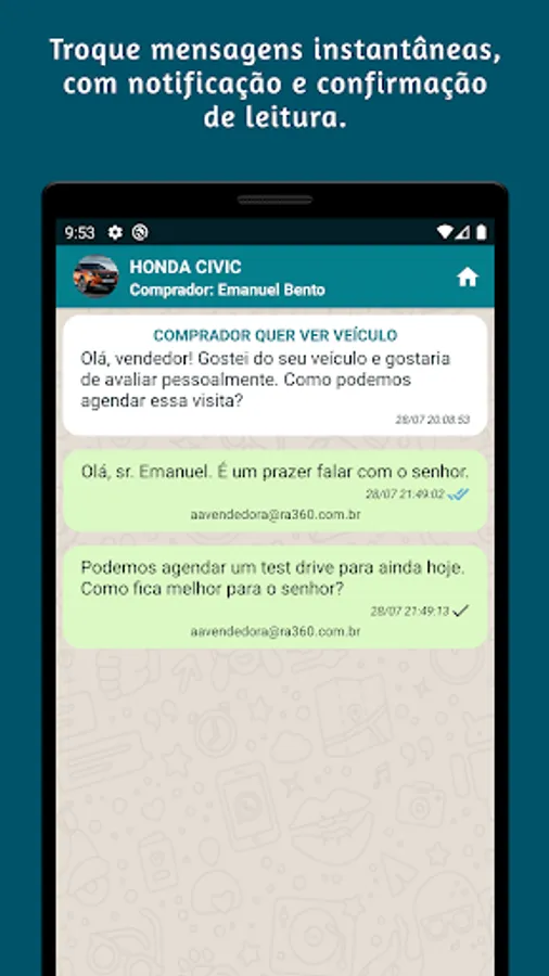 • Publicize the ad to interested parties, as easy as sending the photos of the vehicle to them.