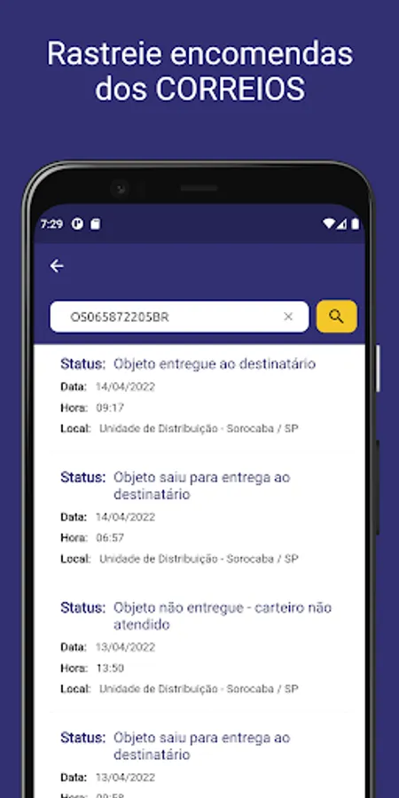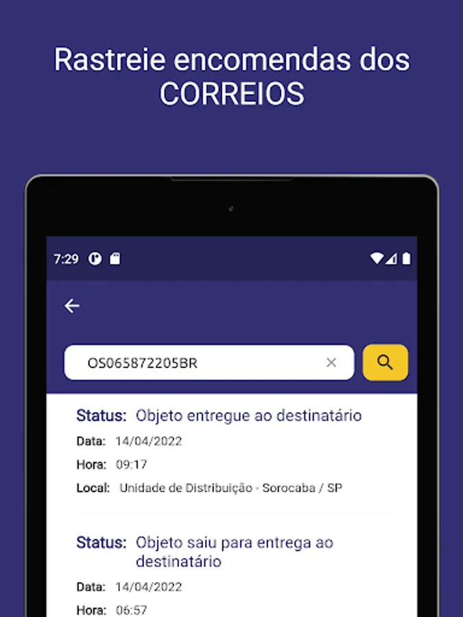 With Easy Tracking you can track all your parcels sent by Correios and also search for an address in any city from a valid zip code