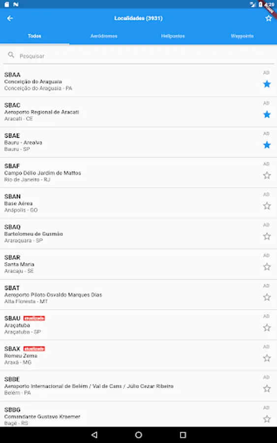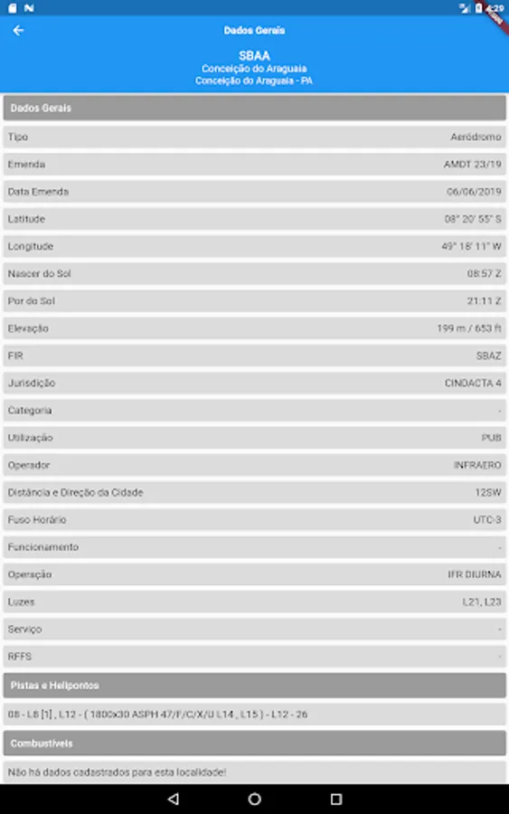 - Access to information all Brazilian aerodromes and helidecks, always updated every 7 days (every Thursday) according to AISWEB amendments.