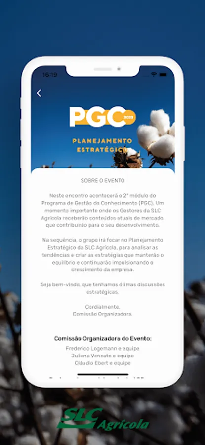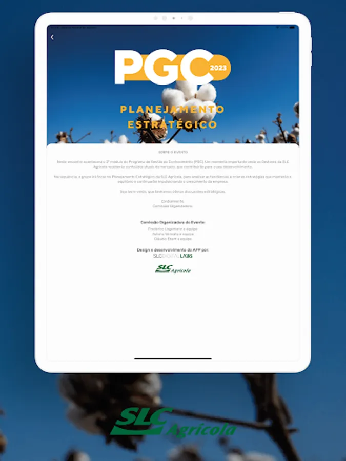Application of SLC Agrícola for management and organization of events.
