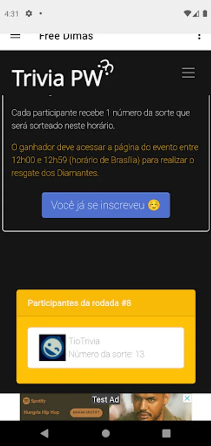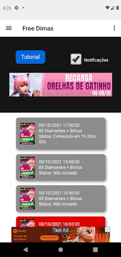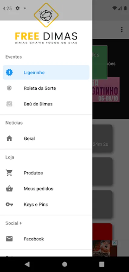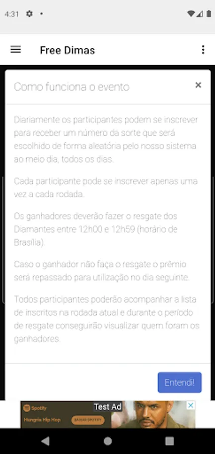 There are currently two types of daily events available! After installing the application you can access the menu and click on Free Dimas to participate.