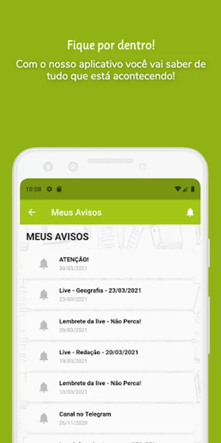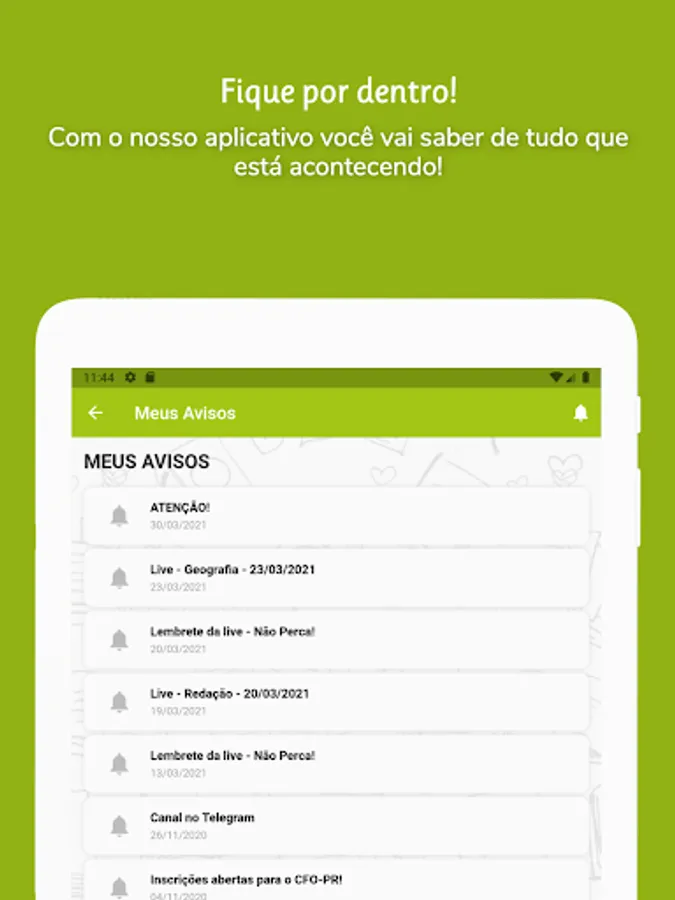 On the portal the student can watch his classes, as well as download materials, see his doubts, notices and his agenda