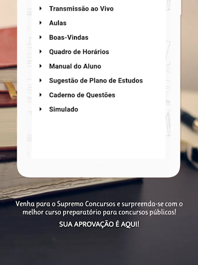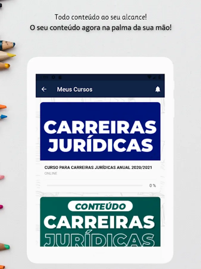 On the portal the student can watch his classes, as well as download materials, see his doubts, notices and his agenda