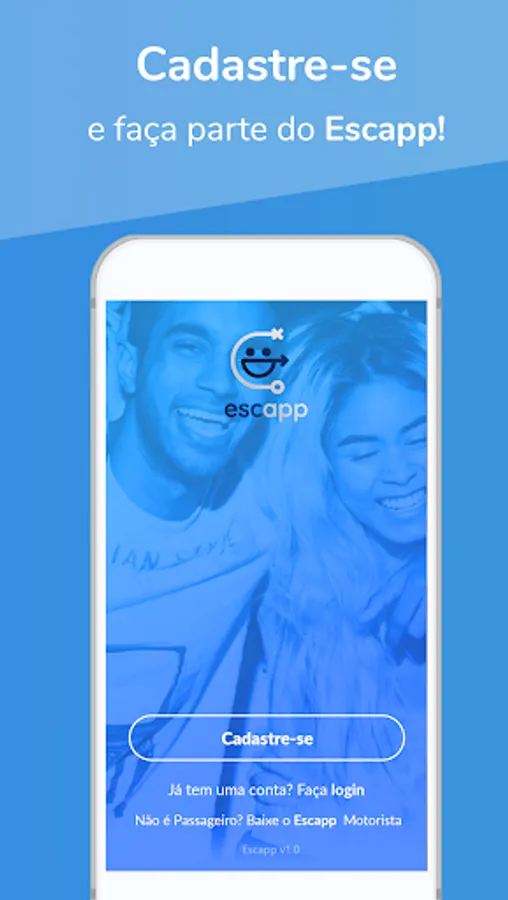 ESCAPP is an app to request fast and reliable motorcycle trips in just a few minutes, available 24 hours a day. There is no need to wait for a taxi or bus. Just touch the ESCAPP app to request a trip. Payment is easy and fast, by credit card or cash. - Just open the app and inform your destination. - The app uses your location so that the driver knows where to find you. - Payment can be made by credit card or cash. Want to save even more on your travels? Use ESCAPP. Doubts? Access our support. [https://escapp.com.br/].