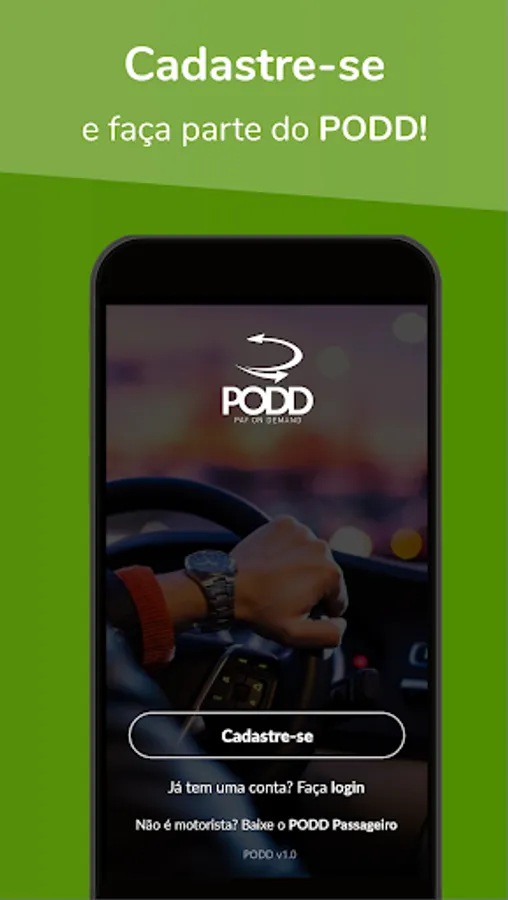 After checking the prerequisites (www.podd.coop.br/faq) and the driver is able to drive in the PODD, he can download the app on his cell phone, register, send the requested documents and wait for the return of the our team. This step is important, because here we analyze the documents sent and the driver's profile. At the end of this analysis, the stage of psychological tests, health exams and training begins, but all very quickly. At the end of the process, the driver will be able or not to run in the application.