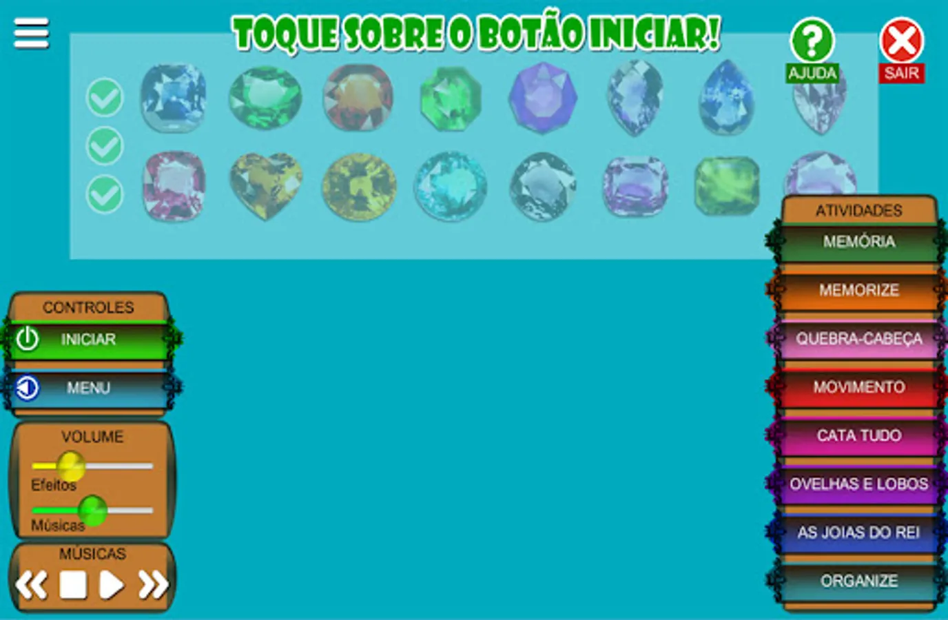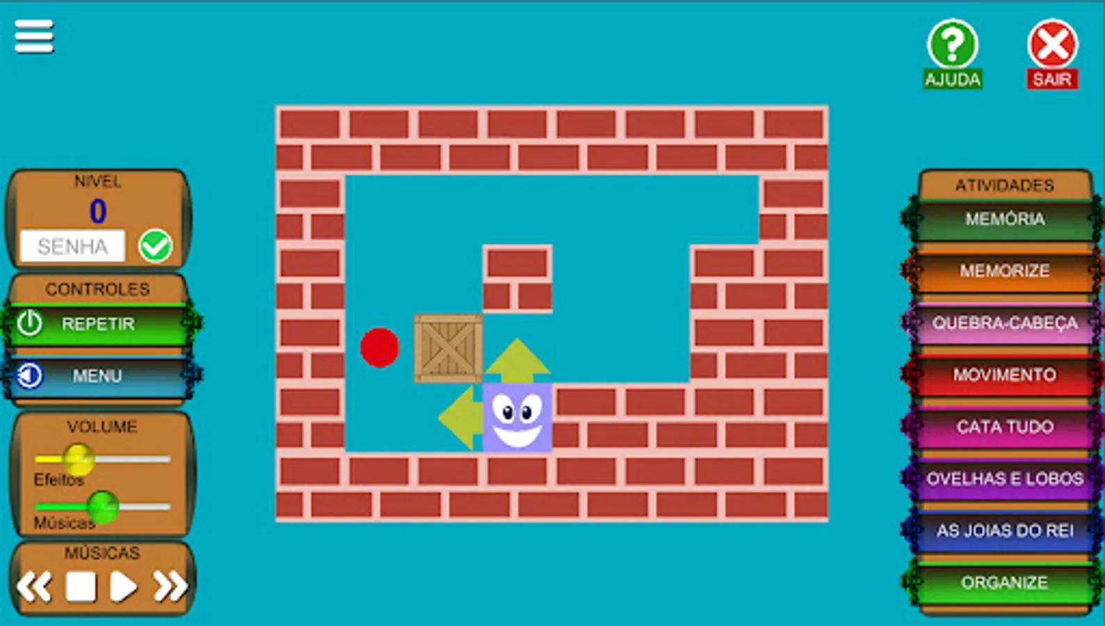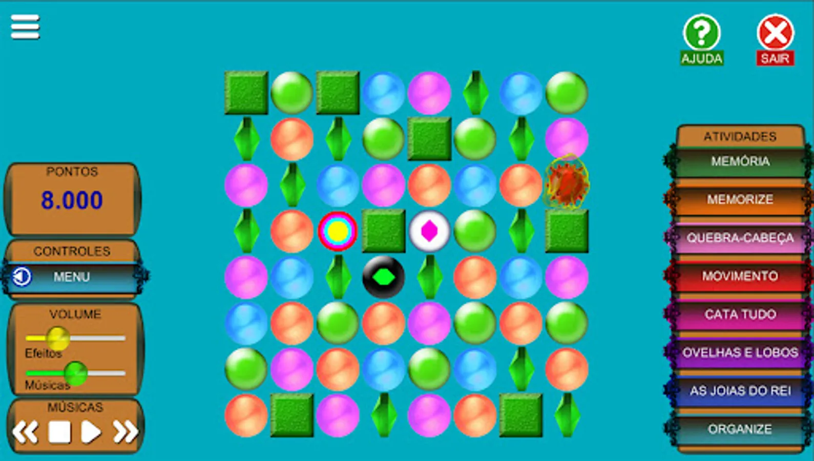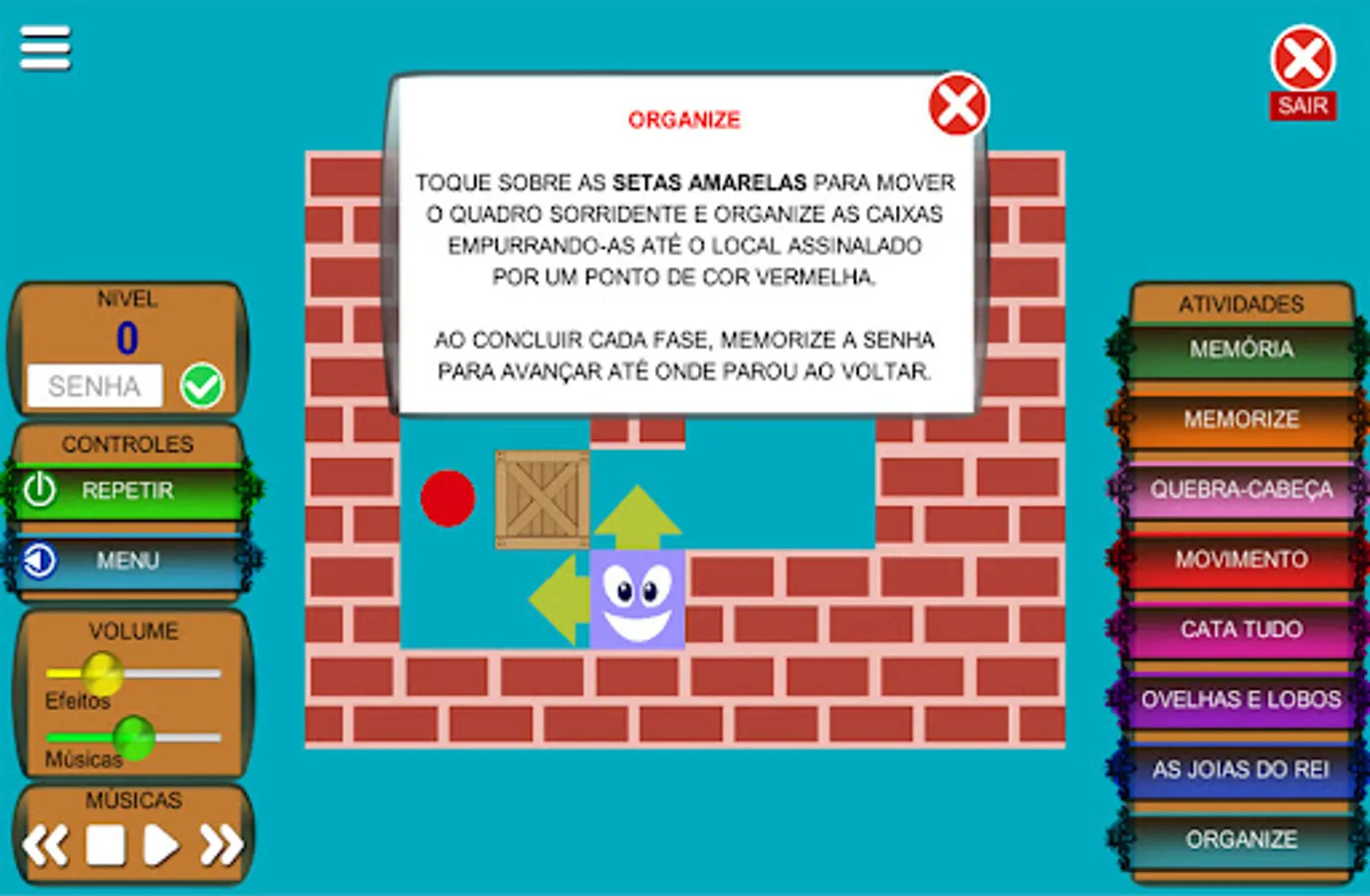It contains several activities designed for the development of the logical and motor reasoning ability, such as: Puzzle, Memory, Cata Tudo, Memorize and others.