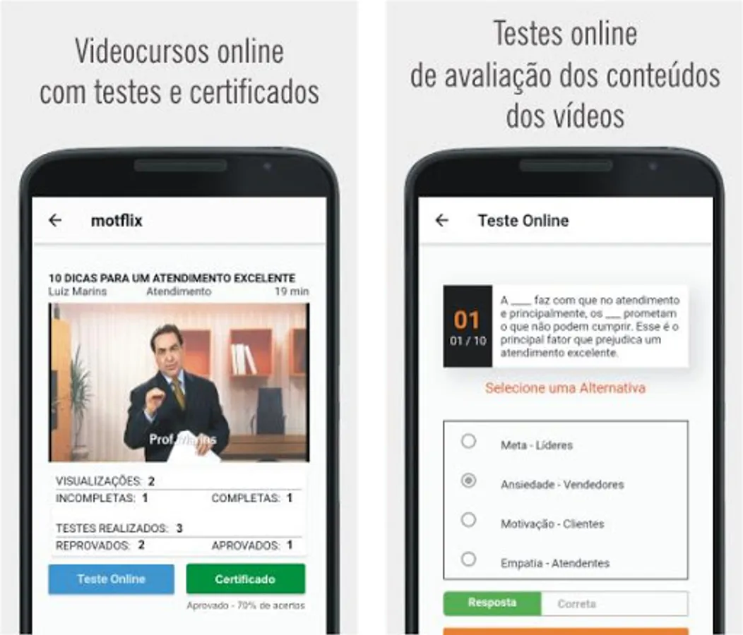 Videocurso's main concern is to meet the needs of the company and the Brazilian man. To this end, it develops Training Videocourses for various Sales and Business modalities, in addition to the areas of Motivation, Marketing, Modern Management, Leadership, Human Relations, Innovation, Entrepreneurship and the complete collection of Professor Marins.