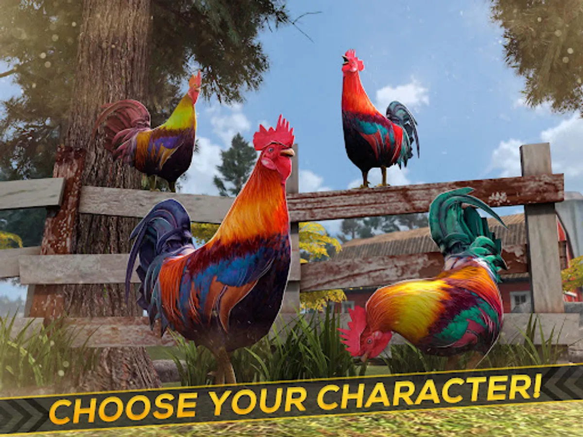 Another frenzy chicken day in the farm: And again roosters are fighting each other for to be the dominant roosters in the henhouse, where chickens, roosters and hens live all together in this wild animal simulator.