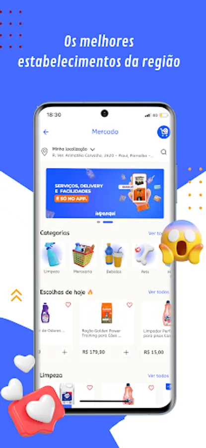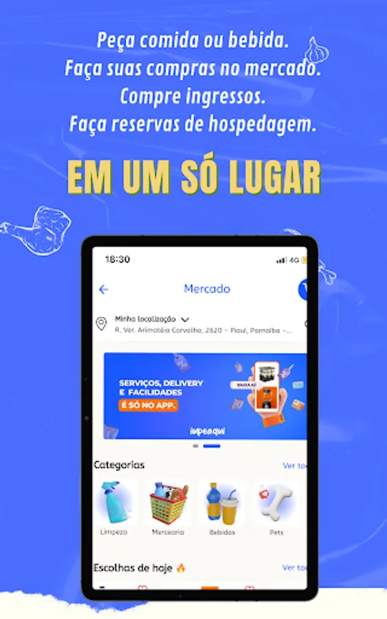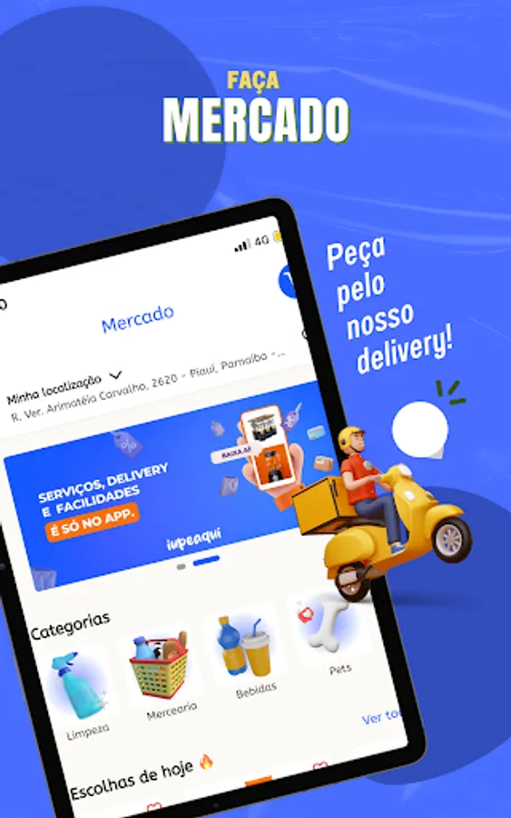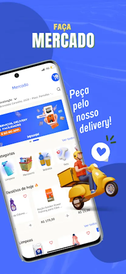 Market Delivery: With our app, you can order groceries from local supermarkets and have them delivered to your home. We offer a wide variety of products, from fresh fruits and vegetables to canned food, cleaning products and pet products. With competitive prices and fast deliveries, we make sure you have everything you need to keep your home well stocked.