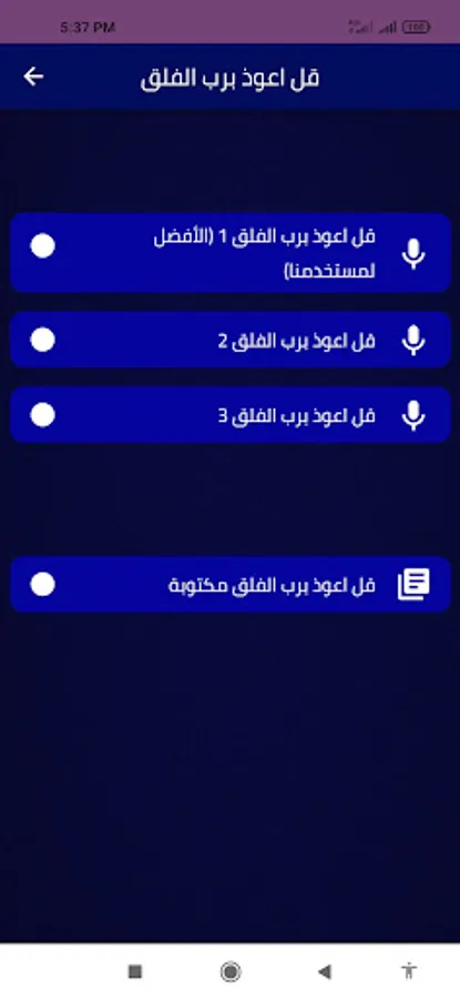 يمكنك التنقل بين أزرار تطبيق قل اعوذ برب الفلق بسهولة