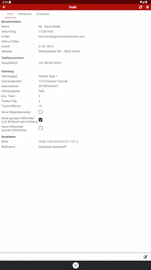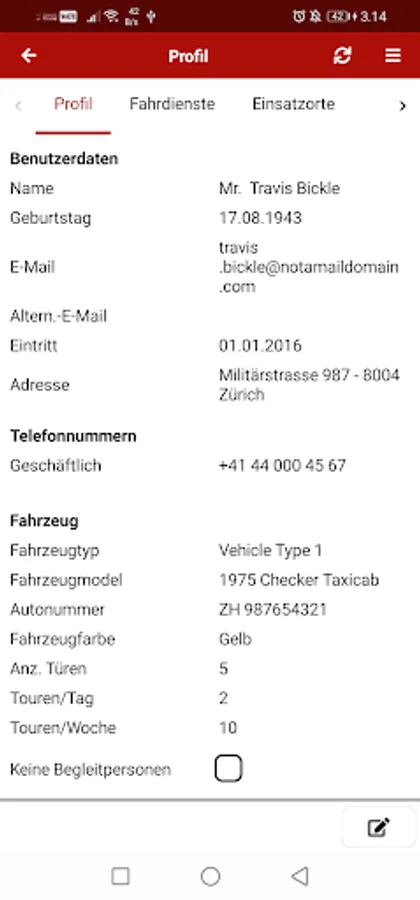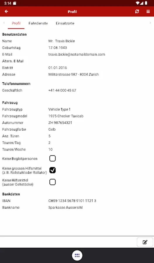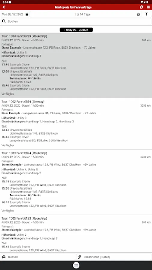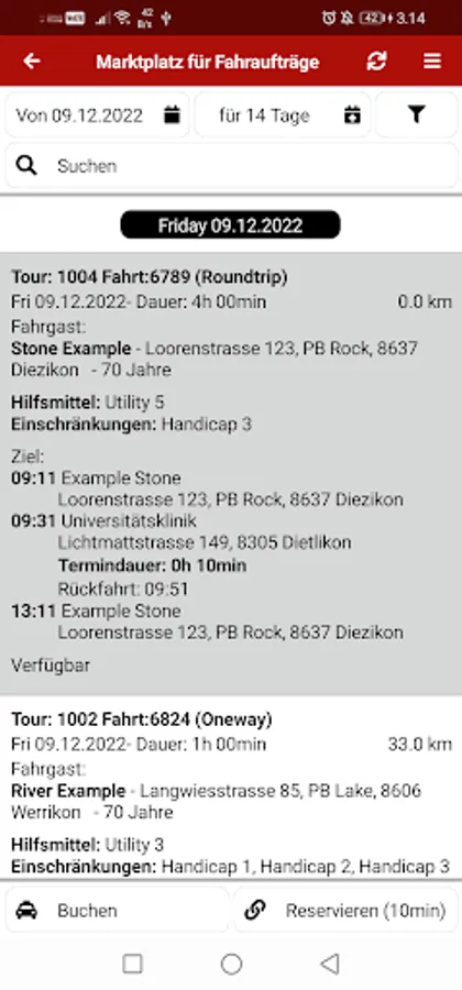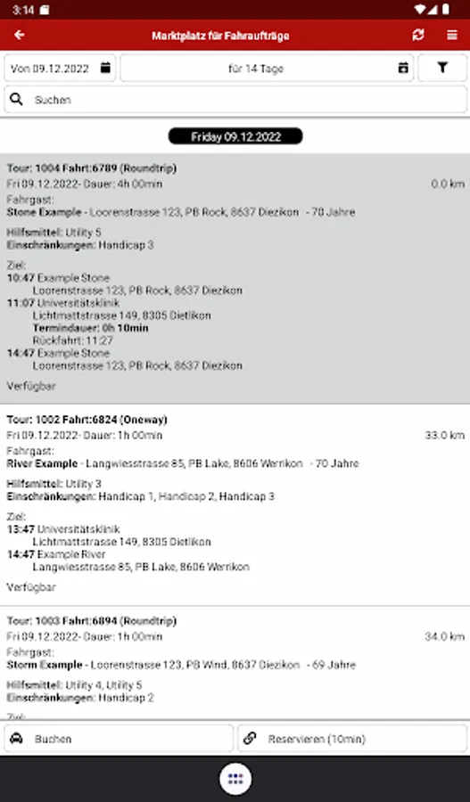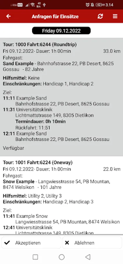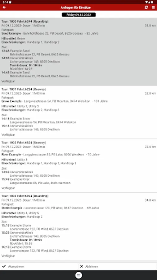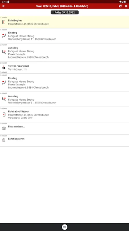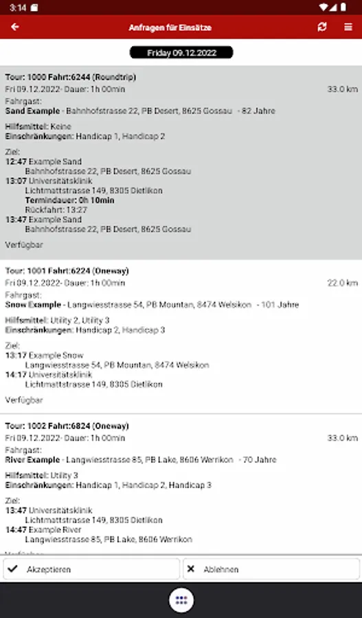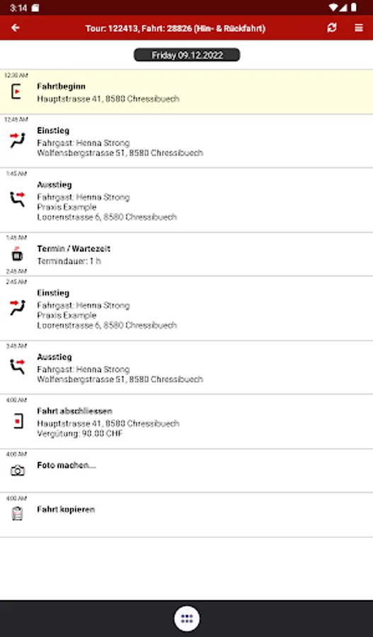 The app offers the volunteers of the Red Cross driving service the following functions: