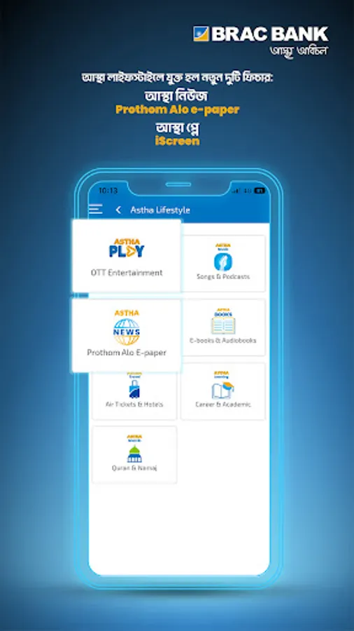 You can get the features below with just a swipe of your fingers using ‘BRAC Bank Astha’: