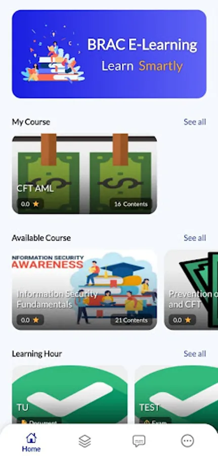 User group of this application is all Full Time Employees of BRAC Bank Limited. They will take part in self-paced learning courses in sequential design focusing on areas ranging from regulatory compliance, technical competence to soft skills development. Said self-paced courses will contain in-course mock assessment and summative certification tests upon passing which users will get to download certificates. Other features of this application are Learning Hours (open ended brief courses), External Courses, E-Library for learning resources and Forum for interaction within user community.