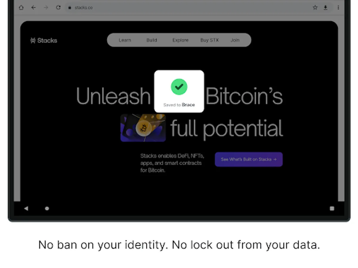 Bring back control of your identity and your data one link at a time with Brace.to, powered by web 3.0 technology from Stacks to make sure that your privacy cannot be compromised. Not just that Brace.to doesn't be evil, Brace.to can't be evil.