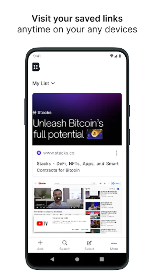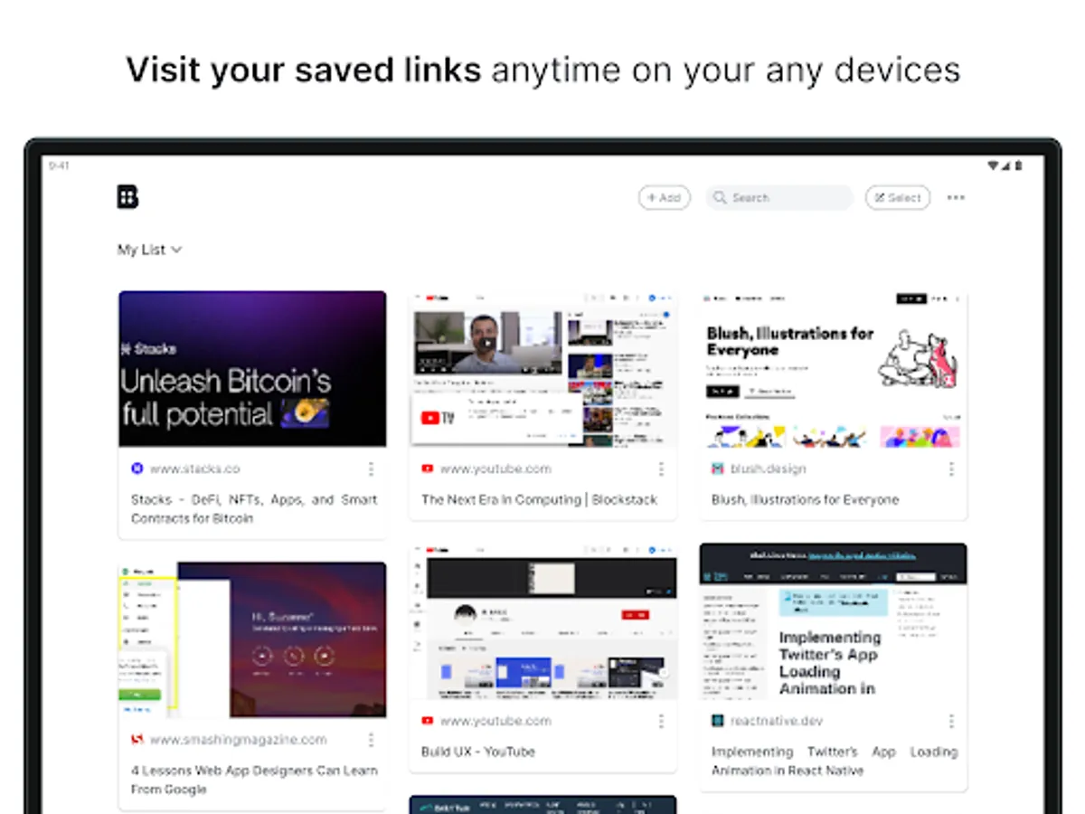 Then you can visit your saved links anytime on any of your devices. Every link you save will be beautified with its representative image and title so that you can easily find it and recognize it.