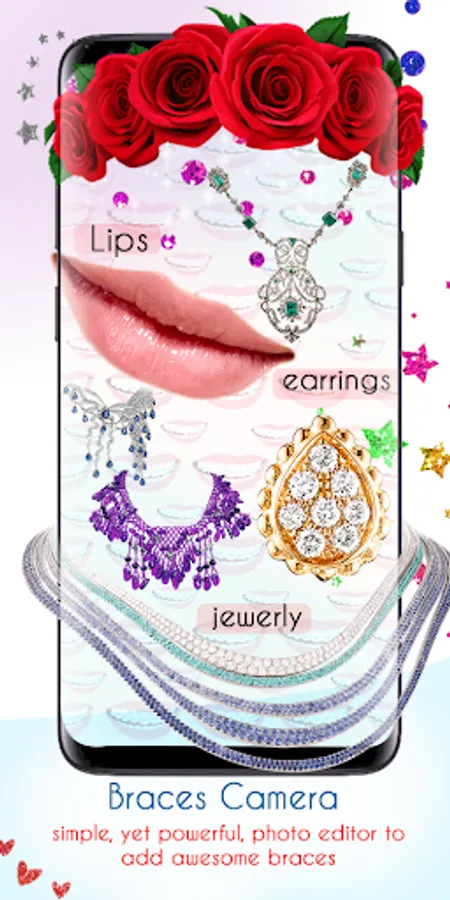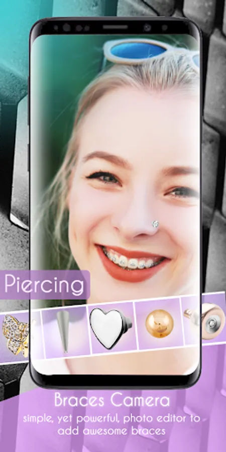 - Braces Photo Editor Included many editor like Lipstick Photo Editor, Eyelashes Photo Editor, Eyebrow Photo Editor, Piercing Photo Editor, Hairstyle Photo Editor, Eye lens Photo Editor.