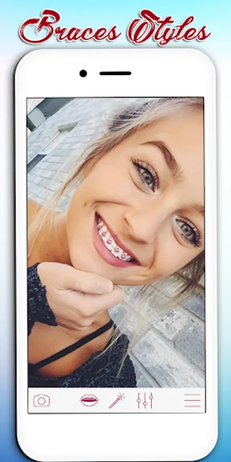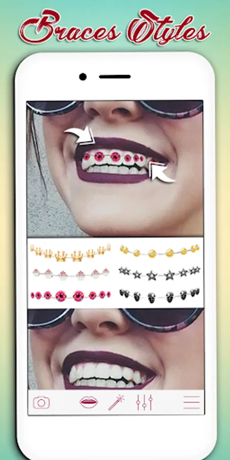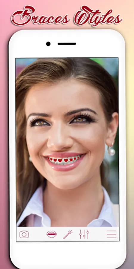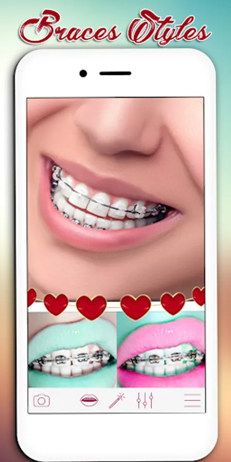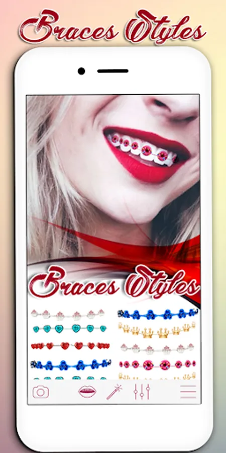 braces photo editor can change the appearance of your teeth into fake brace. from this app, there are many brace type which can make you beautiful. it is also a makeup application that can change your teeth look into a beautiful wearing fake braces.