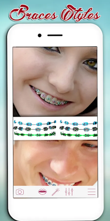 Braces photo editor is a completely new teeth photo editor, which will help you to relax, if you think you can become ugly after dentist put braces on you. Don’t be afraid of braces dentist’s drill or dentist clinic – turn dentist office into the real beauty salon – change your style and surprise friends.