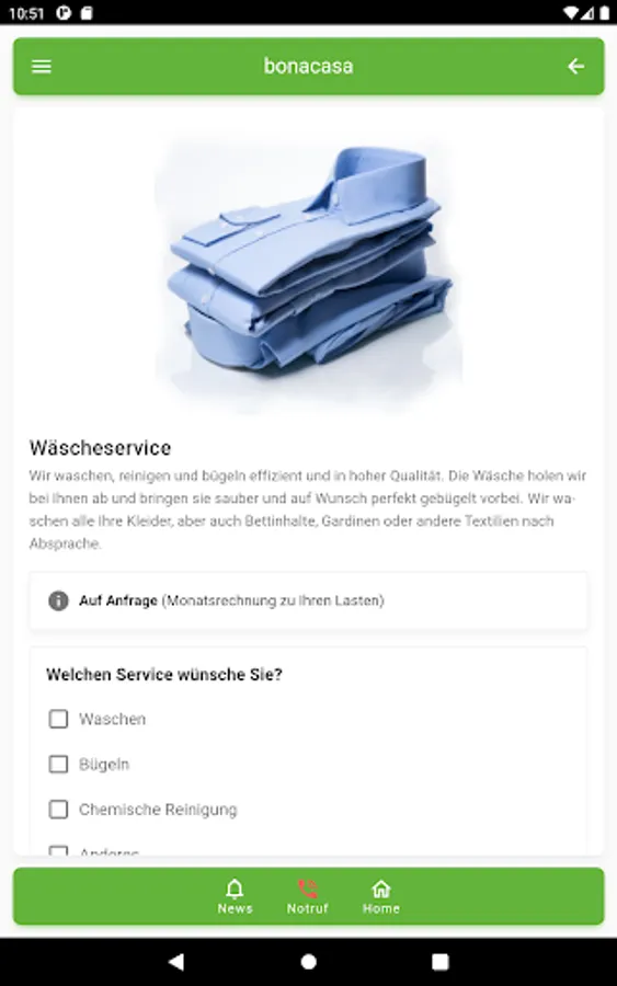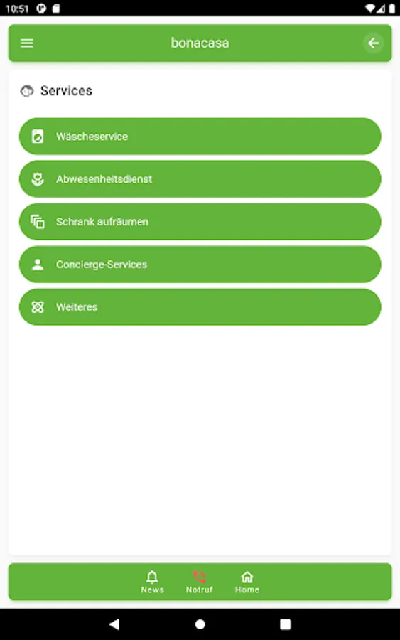 Whether it's cleaning, laundry service, driving services, delivery service or individual concierge requests: with the bonacasa app, you can book living services simply and easily and quickly receive help in the event of an emergency for more comfort and safety in your own four walls thanks to the integrated emergency call button.
