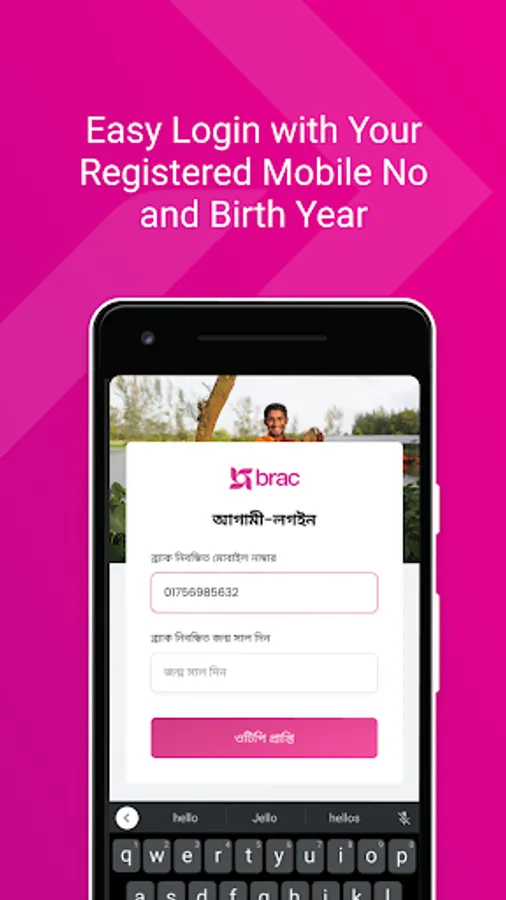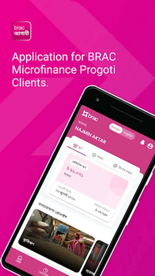 Introducing BRAC ‘Agami’ - the first financial application for registered Progoti clients. Get 24/7 access to your loan and savings information from your android phone. It is a free app that you can access if you are a registered BRAC Progoti client and avail our various services at your fingertips from anywhere at any time. Log in using your registered mobile number and birth year which you had previously used during BRAC Microfinance Progoti registration.