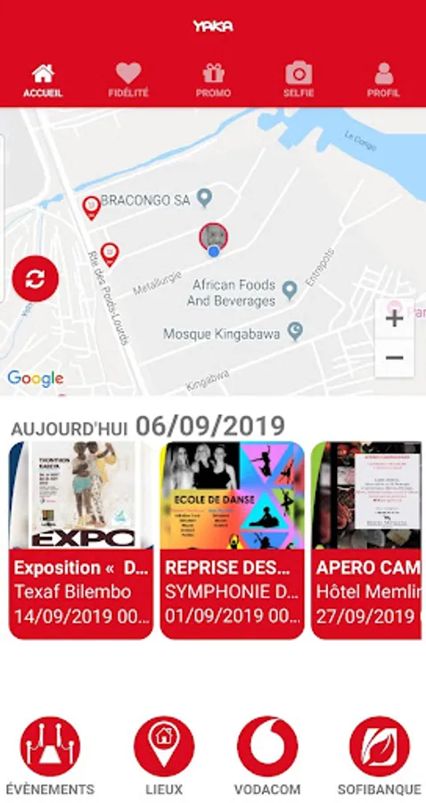 YAKA, is a mobile application based on your geolocation. Drawn from Lingala meaning "Come", YAKA offers the good corners of the city of Kinshasa according to your location.