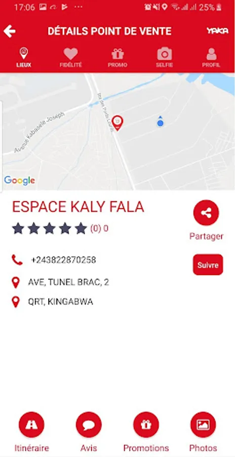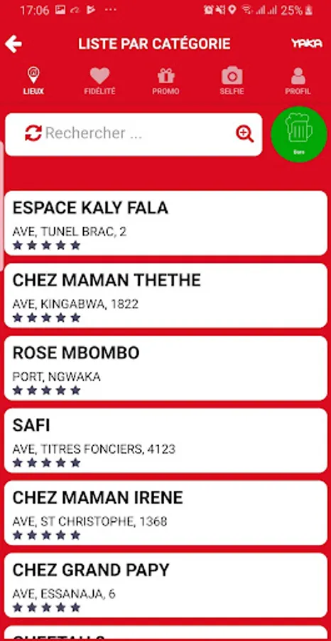 In the menu "PLACES", YAKA makes you discover the best bars, cafes, lounges, hotels and restaurants of Kinshasa as well as their various promotions.