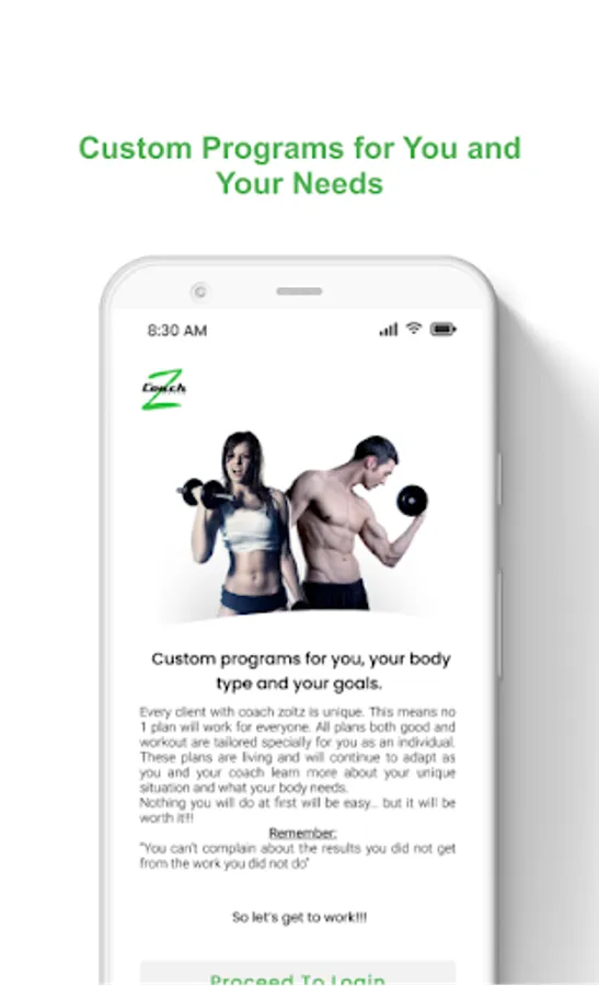 Introducing the Coach Zoltz App, your personalized companion for achieving your health and fitness goals. This app has been carefully designed to provide you with customized diet and workout programs, tailored specifically to your body and needs. With the help of your dedicated coach, you'll have all the tools necessary to track your progress, fine-tune your results, and ultimately transform your health and well-being.