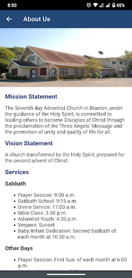 This is the mobile application for the Seventh-day Adventist Church in Braeton. Main features include: