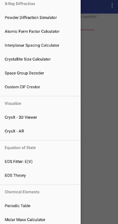 CrysX is a set of crystallographic tools available as apps / applications for Android devices. The tools are extremely handy for physics students, physicists and scientists working in the field of condensed matter physics.