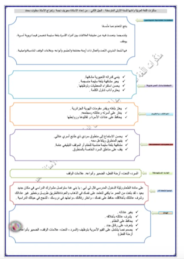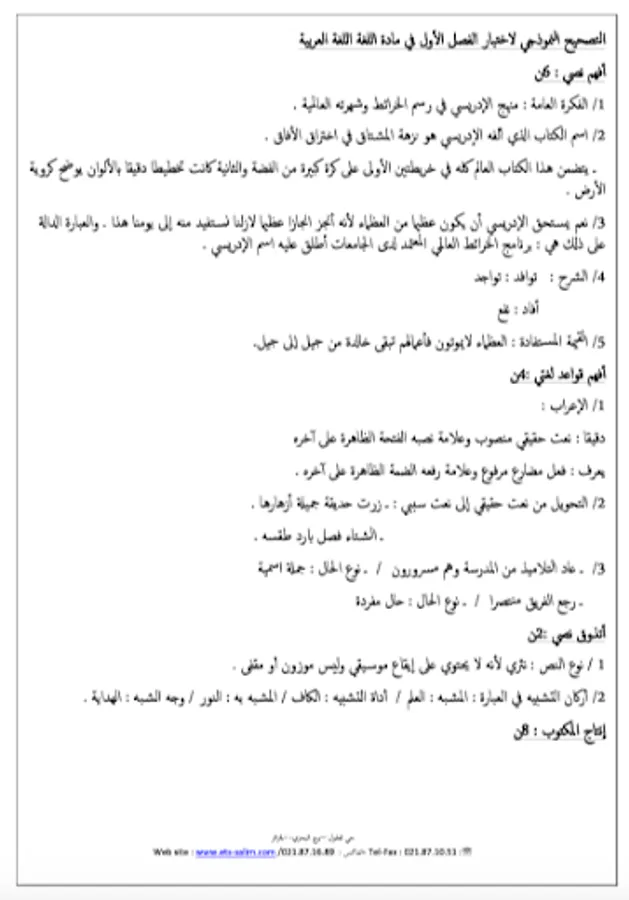 Arabic language notes and tests, first average, second generation