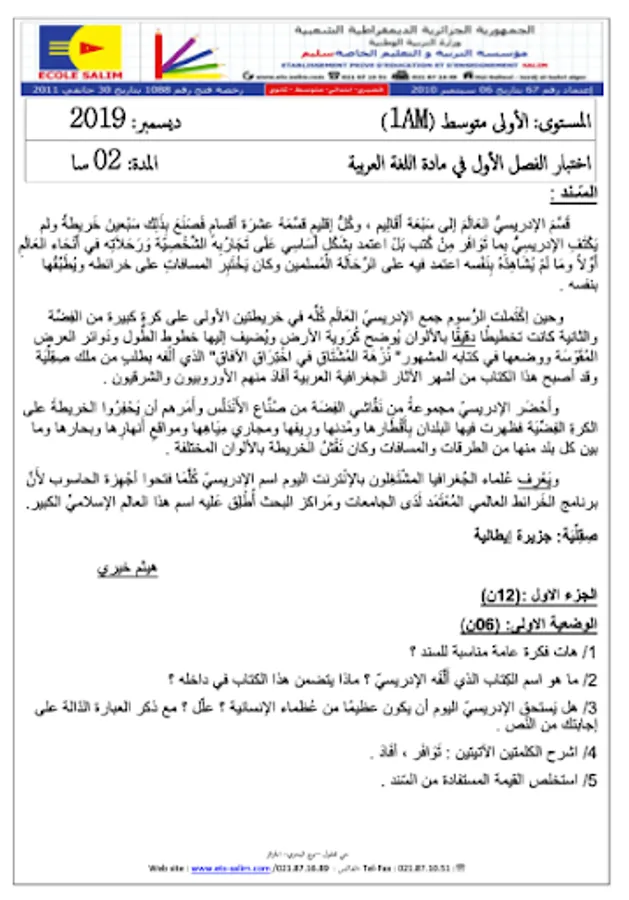 اللغة العربية أولى متوسط