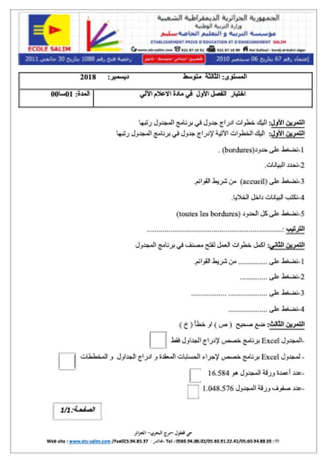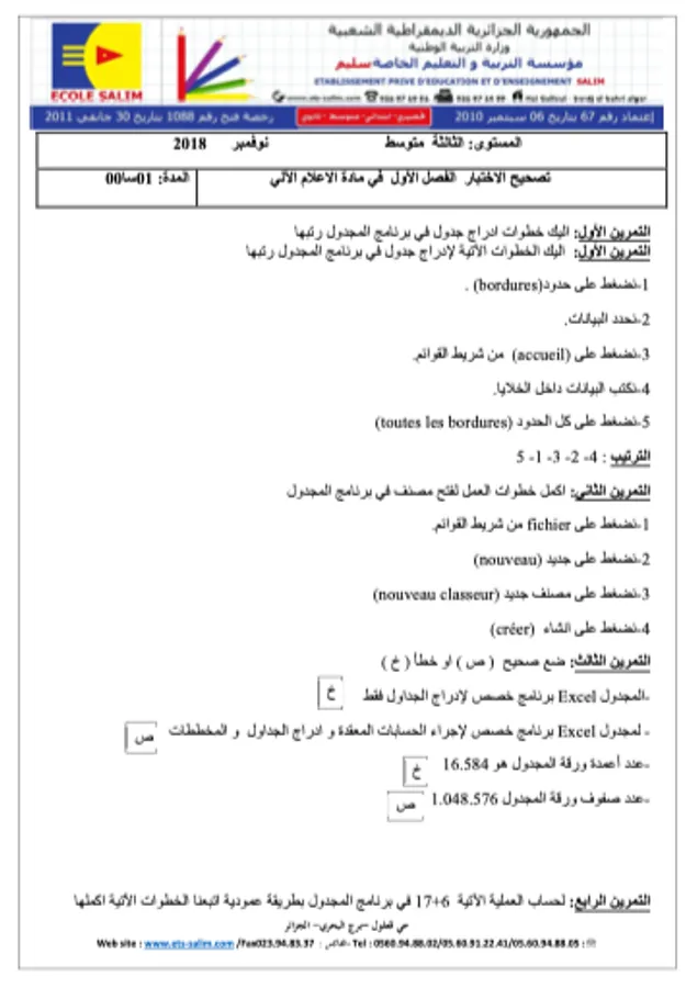 الإعلام الآلي ثالثة متوسط