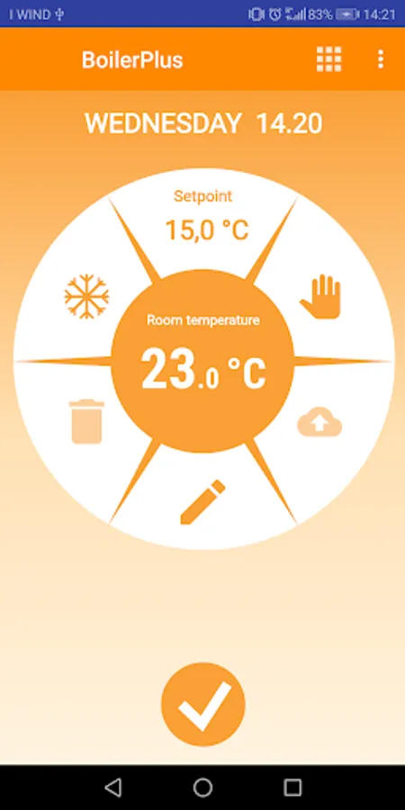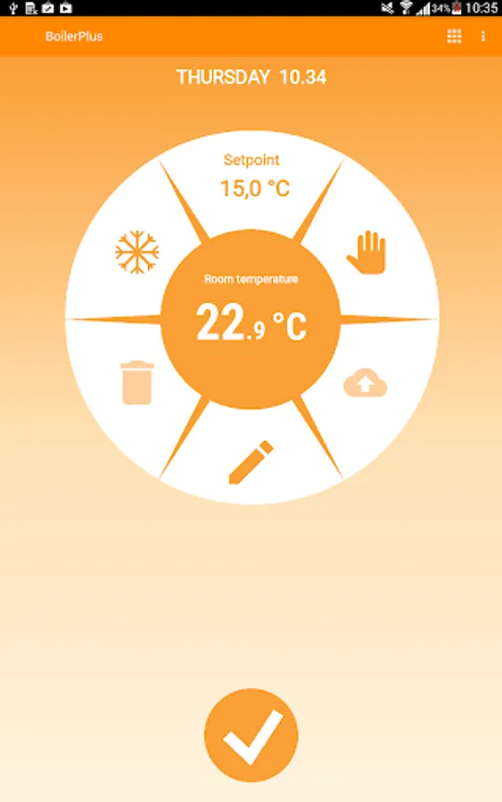 The application allows you to manage a chronothermostat remotely. It is possible to set the manual or automatic operating mode, the summer or winter season, the holiday function, the room temperature setpoints and the weekly time schedule. Thanks to the self-diagnosis function it is possible to know at any time the status of the chronothermostat and of the boiler connected to it.