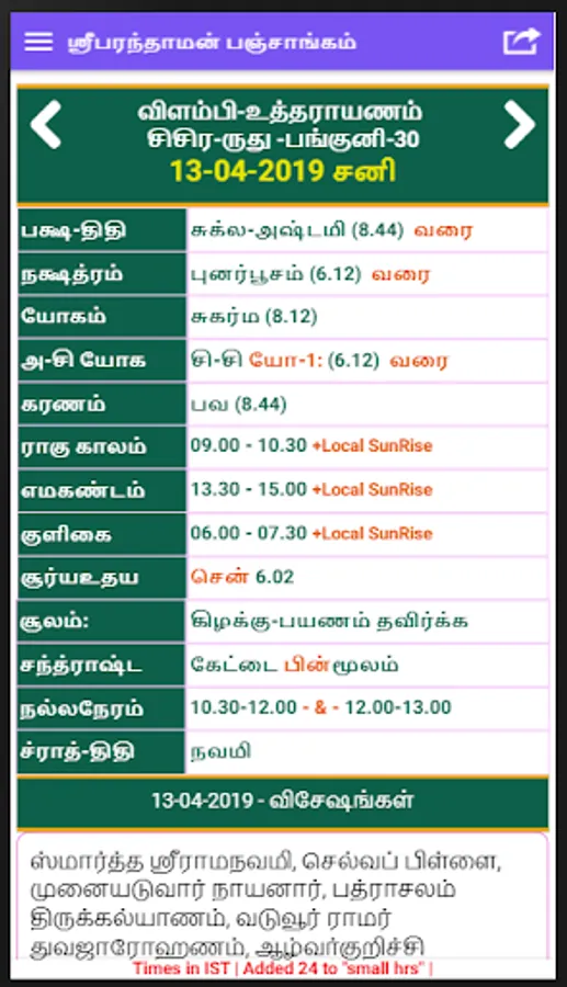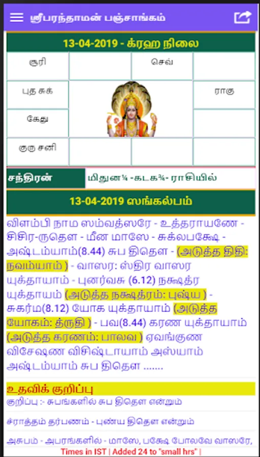 Parantham Tamil Vakya Panchangam app - published by www.brahminsnet.com - Updated