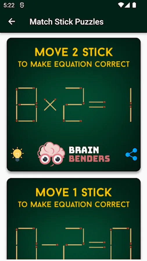 Are you ready to put your mind to the test and have some fun while you're at it? Look no further than Brain Benders! With a wide range of puzzles and riddles to choose from, our app offers something for every level of expertise. Don't miss out on this opportunity to sharpen your mental abilities and have a blast doing it. Download Brain Benders today!