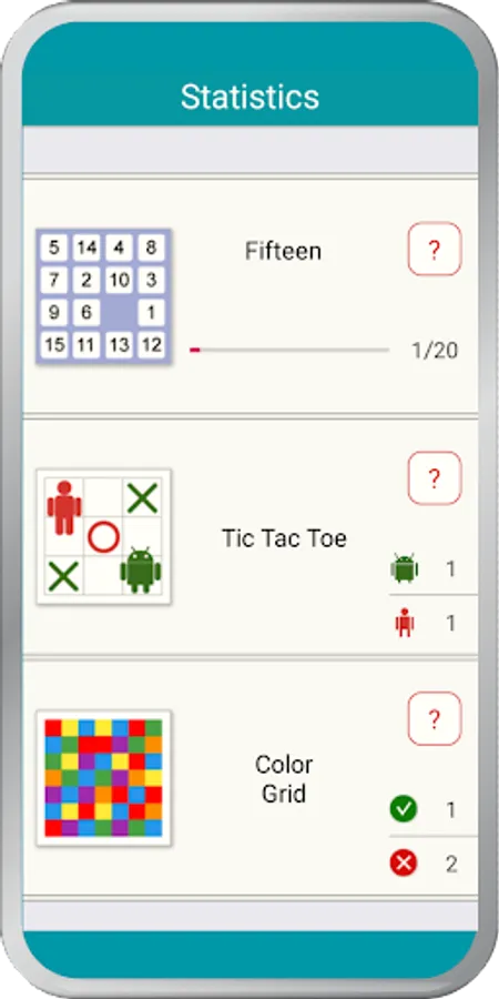 "Fifteen and other games"– is a collection of popular games: "Fifteen", "Tic Tac Toe" and "Color Grid".