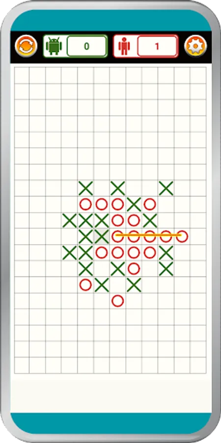 "Tic Tac Toe" is a classic game for one and two players. A game for one player is against his Android device, and for two players it is a game with a friend. Android has 3 difficulty levels and, depending on the score, gradually complicates the game. The winner is the one who first places 5 of his pieces in a horizontal, vertical, or diagonal row. If the field is filled and there is no winner, the game ends in a draw.