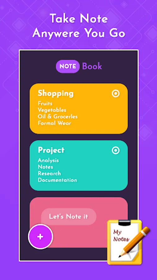 Note is a secure note Feature that allows you to create secret notes and reminders and to organize data in lists (to do list, checklist, shopping list). Text are securely encrypted. Create safe notes with this notepad!