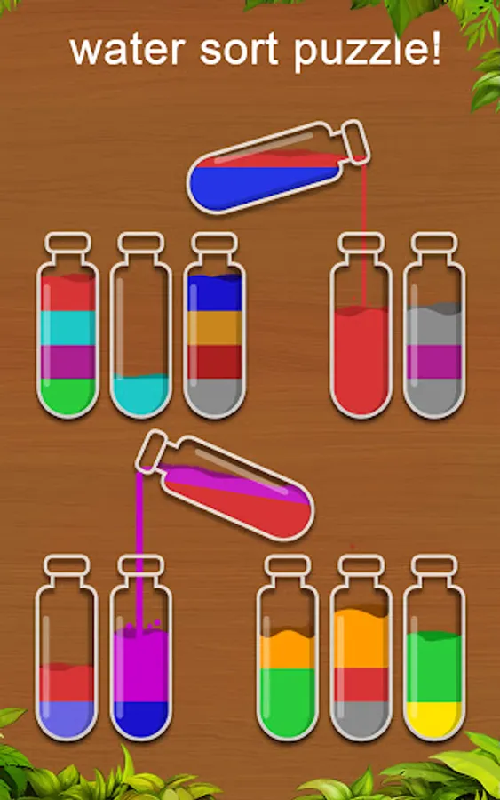 -Please sort the colored water in the glass,Until all the colors are in the same glass!