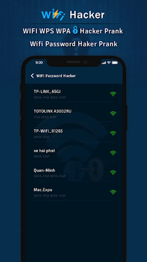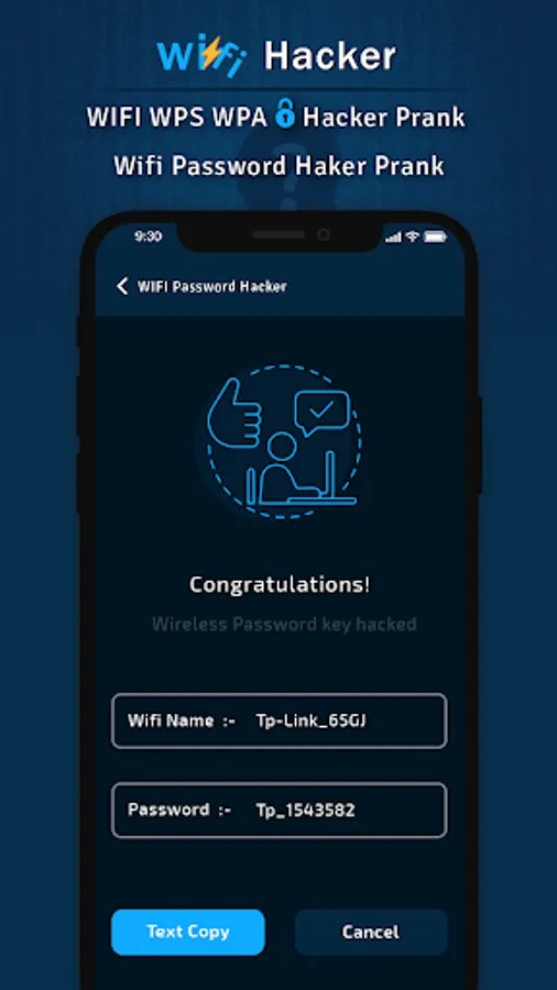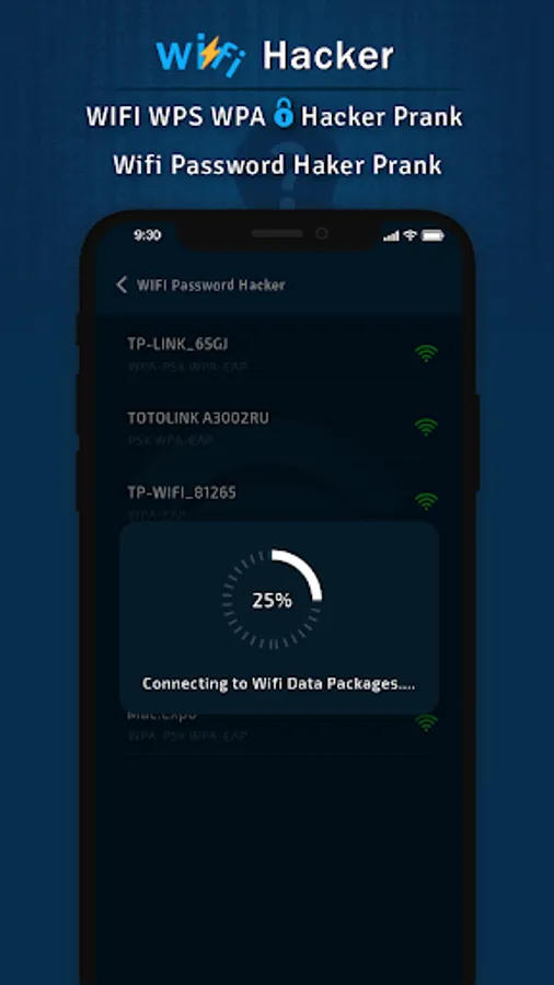 Wifi Hacker Prank app for free, it cannot crack any wifi password. The simulation of password cracking is just for fun.