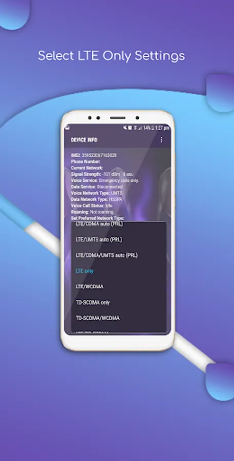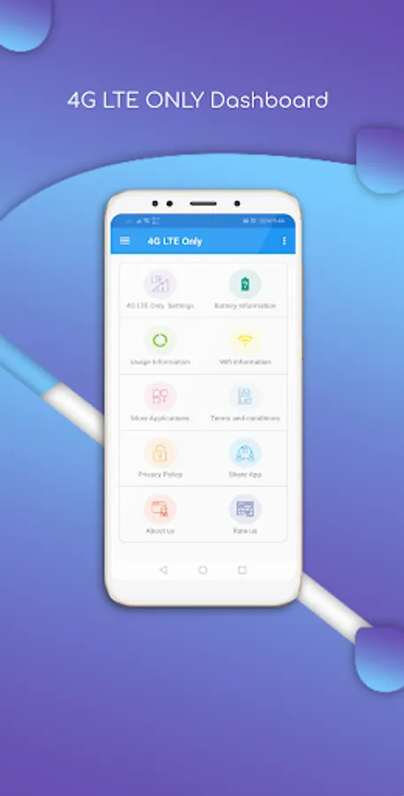 4G LTE Switch allows you to switch to LTE only mode by allowing to open a hidden settings menu. This app has a lot of other features like Advanced Network Configurations, Battery Information, usage information, Wi-Fi Information.